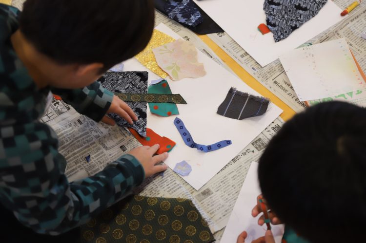 実際に見て、切って、貼って、富士吉田の織物に触れて学ぶ時間になった。
